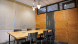 会議室では、来客したお客様との打ち合わせなどで活用されており、入り口にはサザンビーチのキッチンのロゴと同等に、波をイメージされたロゴが飾られてています。